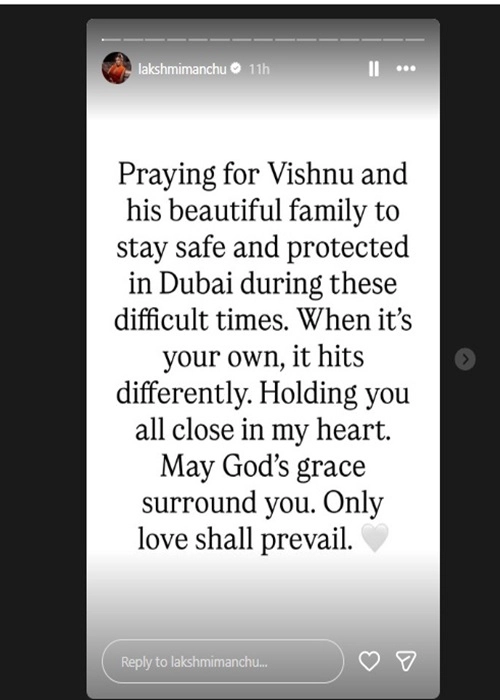 Lakshmi Manchu Prays for Brother in Dubai Amid Middle East Tensions