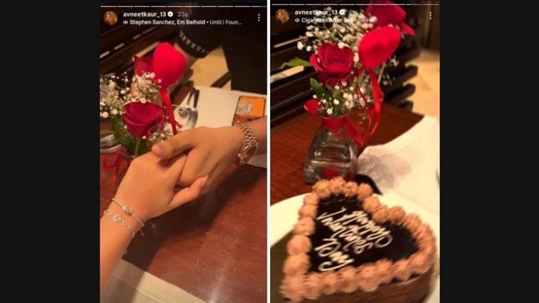 Actress Avneet Kaur has found herself at the centre of social media speculation after sharing and quickly deleting a romantic post on Valentine’s Day. The update, which appeared on her Instagram story, featured a photograph of the 23-year-old holding hands with a mystery man across a dinner table. Avneet Kaur Shares Her Experience on Meeting With Tom Cruise, Says 'He Already Knew About My Cannes Appearance’.
