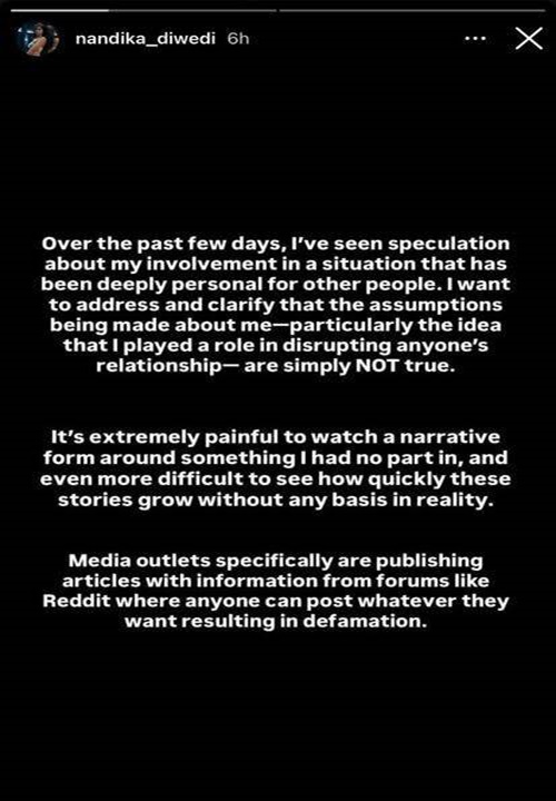 Putting forth her perspective on the matter, Nandika wrote on her Insta Stories, “Over the past few days, I have observed speculation about my involvement in a situation that has been deeply personal for others. I want to address and clarify that the assumptions being made about me—particularly the idea that I played a role in disrupting anyone's relationship—are simply NOT true. It is extremely painful to watch a narrative form around something I had no part in, and even more difficult to see how quickly these stories grow without any basis in reality. (sic).” ‘I Never Got Involved With Him’: Amid Smriti Mandhana and Palash Muchhal Wedding Row, Mary D’Costa Breaks Silence on Viral ‘Leaked Chats’ and Cheating Allegations, Faces Troll Attacks (View Post).