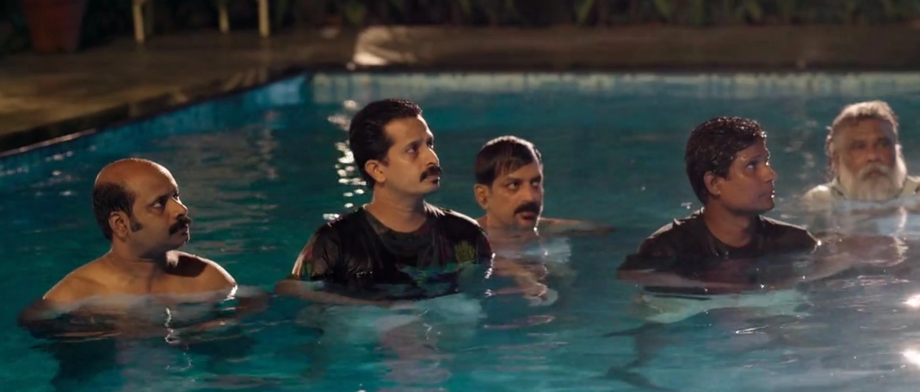 Sijin and Santosh - In a private moment at Madan's house, both indirectly implicate each other, suggesting they had Hari's car keys to access alcohol. This implies they were drinking that night more than the rest, possibly clouding their judgment to commit such an act. However, they did jump into the pool and later took a bath, partially absolving them.