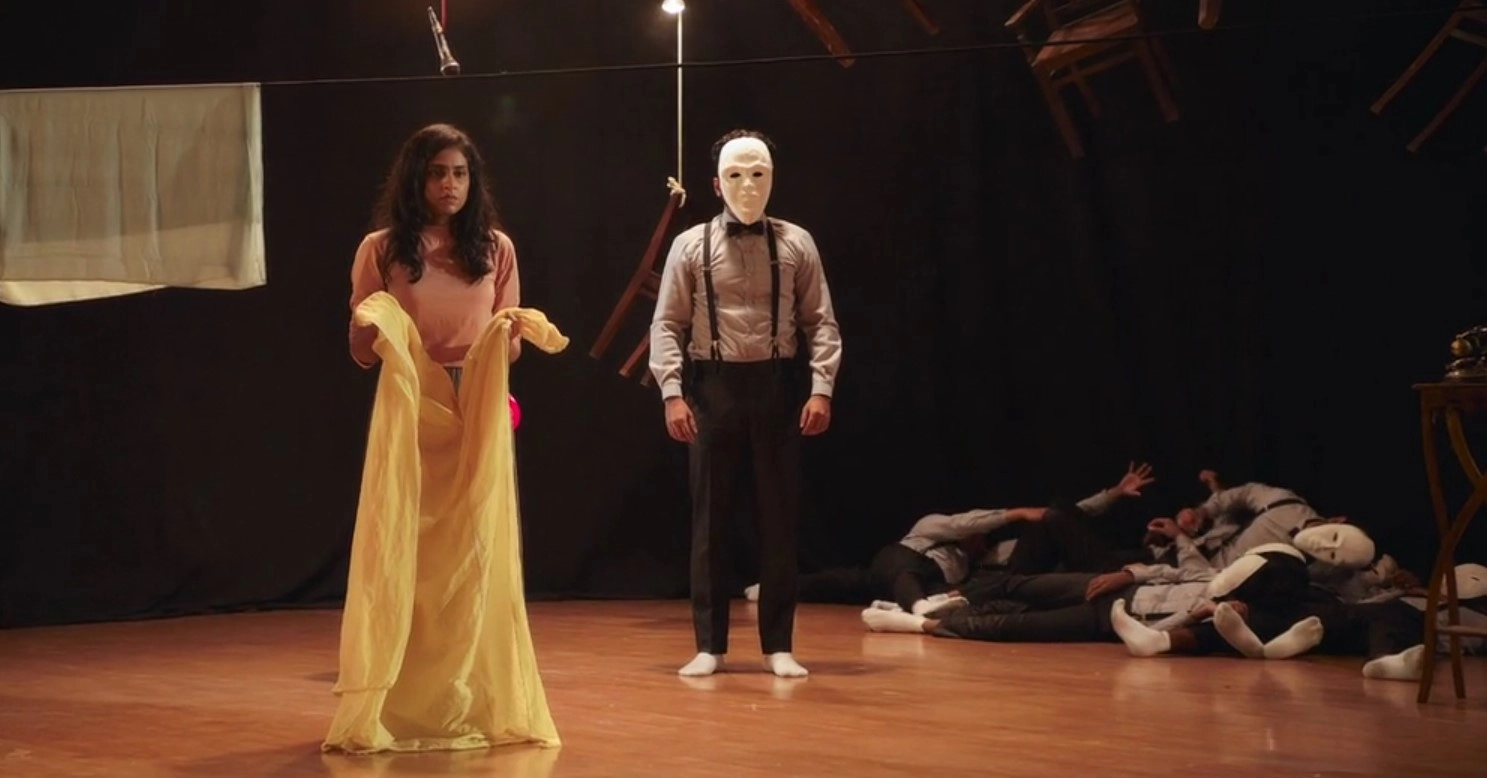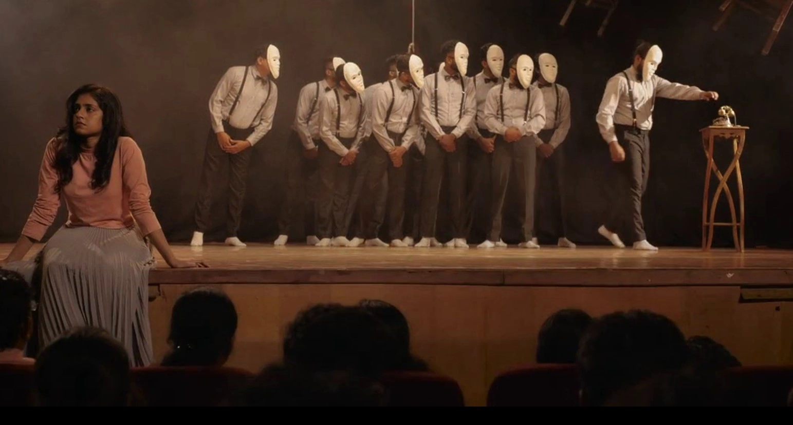 Inspired by the notion that pain serves as a potent muse for art, Anjali, who has departed from Arangu, establishes her own troupe. She channels her experience into her new play's narrative, crafting characters based on the men in her former group to confront them through drama. It's worth noting that despite her betrayal by former male colleagues, Anjali consciously includes herself in a predominantly male group for her play.