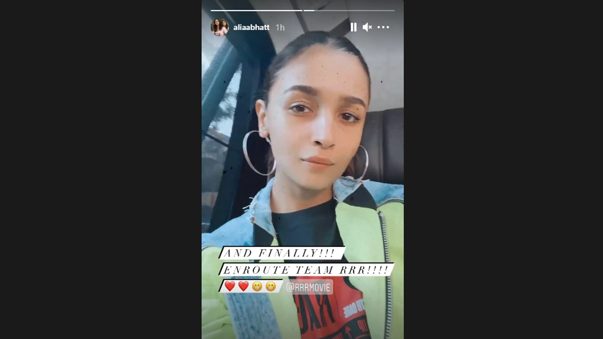 Bollywood star Alia Bhatt treated her fans with news of resuming the shoot for her first Telugu action drama movie, on Sunday. The 'Kalank' star is all set for her Telugu debut with most-sought-after director SS Rajamouli's next film titled RRR from Sunday. The actor took to the Instagram story to share the news for her fans and wrote, "AND FINALLY!!! ENROUTE TEAM RRR!!!! @RRRMOVIE," with red heart and grimacing face emoticons. RRR Actors Alison Doody And Ray Stevenson Share A Glimpse Of Their Looks From The Sets Of SS Rajamouli Directorial!