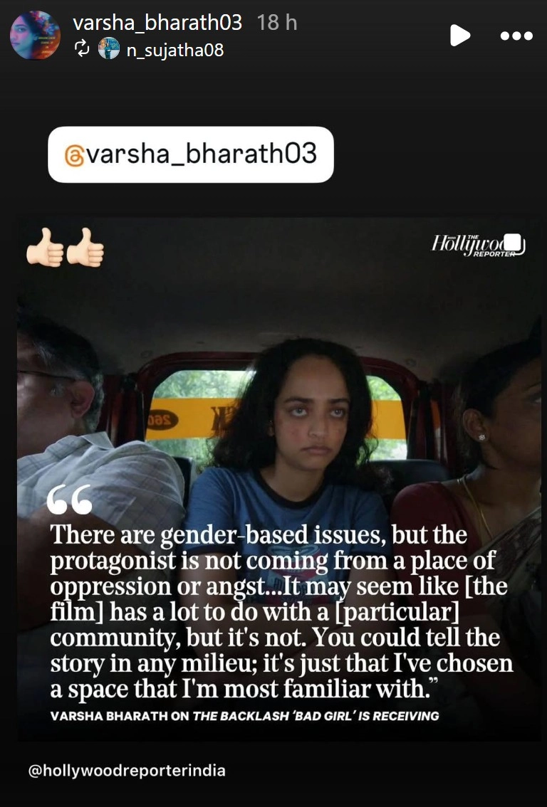 Varsha Bharath's Insta Story on 'Bad Girl' Backlash