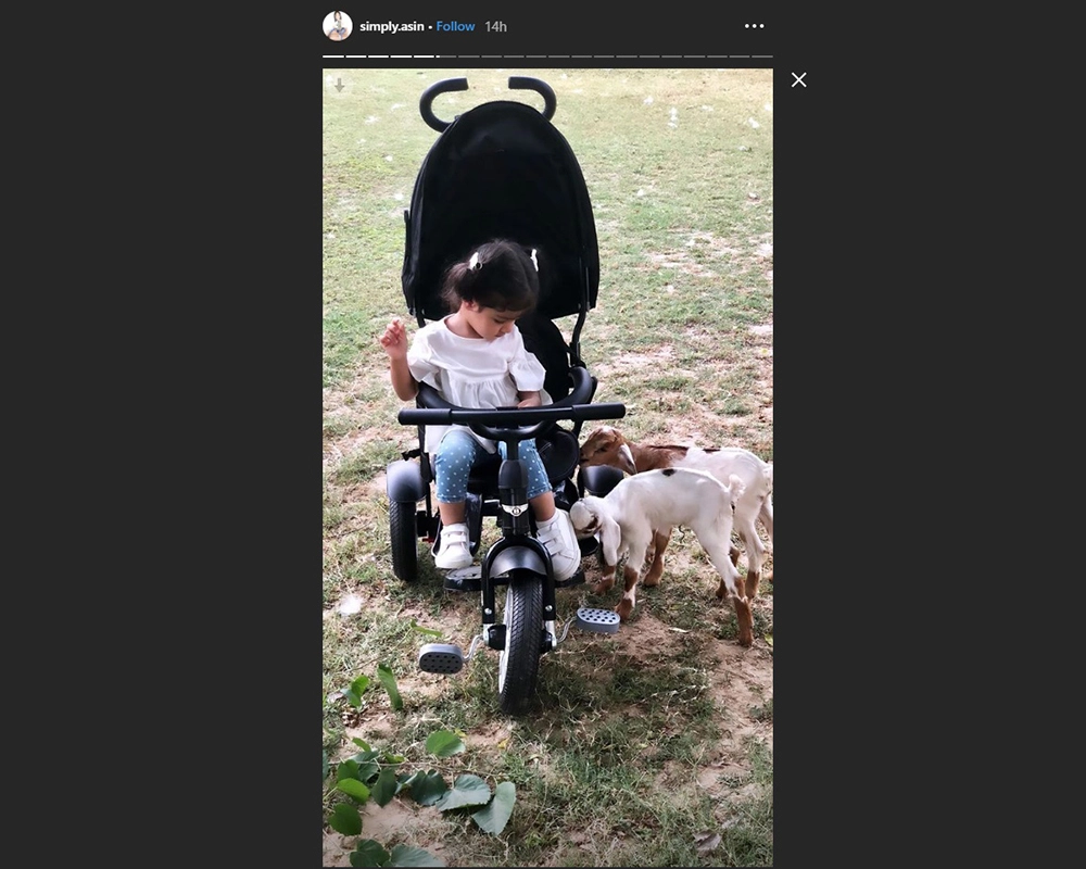On Wednesday, Asin took to the photo-sharing app to share a couple of pictures of Arin as her Instagram stories, where the little munchkin can be seen playing with the lambs in her vicinity of her Delhi abode.