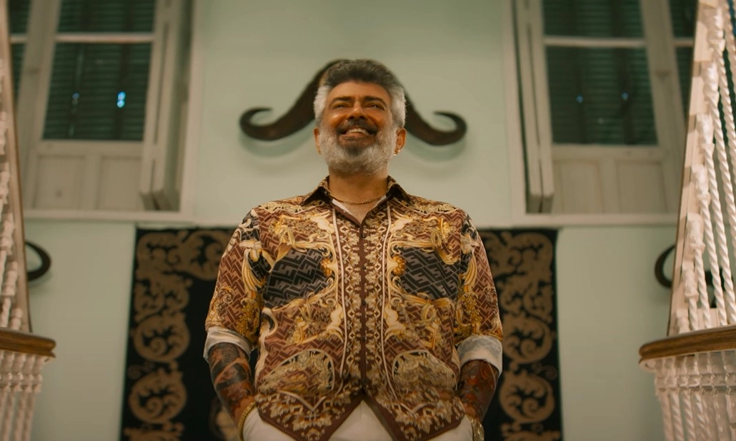 But does it really? The film keeps up its rambunctious energy, continues dropping Ajith references, and throws in a few fun bits (that Simran cameo, for instance). However, the screenplay is just too thin to hold any of it together. The movie looks stylish but rarely feels slick. There are flashes of humour — like Ajith breaking the fourth wall to scold the director for sneaking in yet another AK reference — but they don’t always land as well as they should.