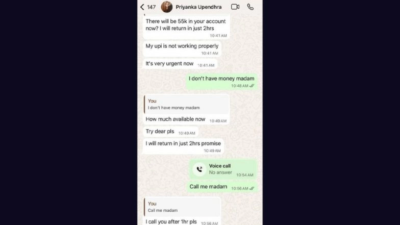 Kanada filmmaker and actor Upendra and his wife Priyanka Upendra have become victims of a shocking cybercrime incident as hackers gained access to their mobile phones. Alerting their followers in separate videos on social media, the couple requested that their contacts not transfer money to their accounts via UPI, as fraudsters had allegedly sent messages demanding INR 22,000, assuring that the money would be returned within a few hours. ‘Coolie’ Movie Review: Anirudh, Not Rajinikanth, Is Real Lifeline in Lokesh Kanagaraj’s Weakest Film to Date! (LatestLY Exclusive).