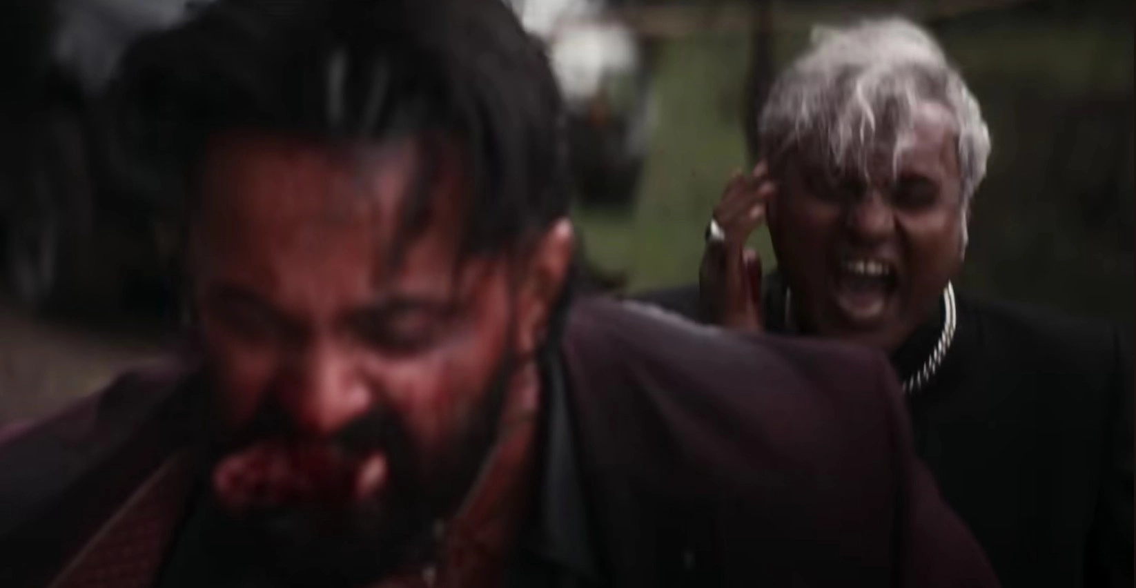 The gore levels spike dramatically in the pre-interval sequence, where Marco and his sidekick are abducted by Russell (Abhimanyu Shammi Thilakan) and his gang. Marco retaliates in full Pushpa-mode, unleashing chaos in a grisly chainsaw massacre. Necks are stabbed, ears are bitten off, intestines spill out, and limbs are torn apart. Russell barely escapes, thanks to his father’s intervention, leaving behind a blood-soaked mess.