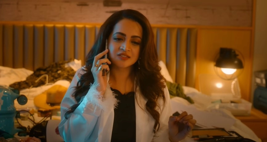The first half of Nadikar is quite breezy and entertaining as it establishes David's arrogant attitude and wayward lifestyle, and how they affect his performances. There's a touch of HBO's Entourage series, especially in David's second introductory scene, and later in a sequence set in the Middle East, where he relaxes with his aides. A couple of sequences stand out in the first half. The first is the shoot sequence where Koshi and David end up verbally sparring with each other. The scene attains nearly the same intensity as the first confrontation scene between the protagonists in Lal Jr's previous (and still his best) film, Driving License. Another scene that worked for me is when an emotionally vulnerable David calls up his former co-star and ex-girlfriend Ann (Bhavana) for advice and receives a dressing down from her that seems to penetrate his thick ego.