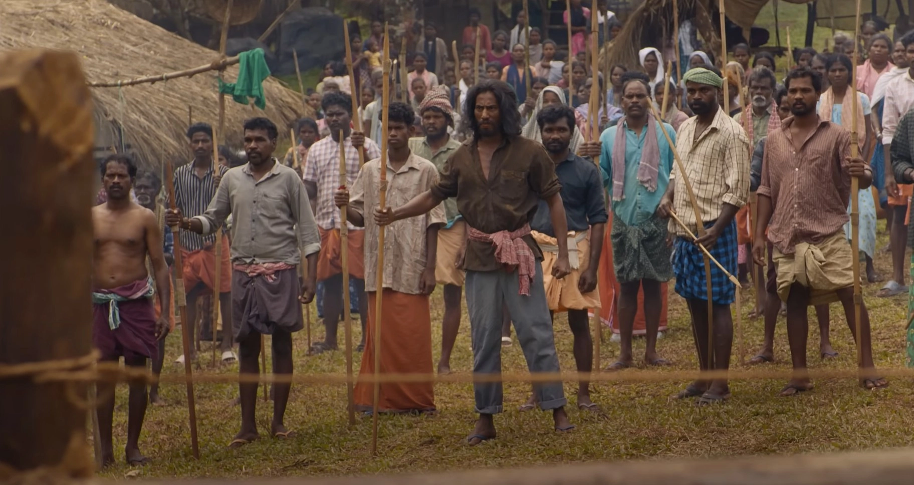 Yet, his backstory isn’t exactly without purpose. Early on, when Shanti (Arya Salim), a courageous tribal leader inspired by real-life activist CK Jaanu, speaks of protesting for their rights for housing, the scene cuts to Varghese and his friend returning from a hartal demanding government jobs. A young Adivasi, Thaami (Pranav Teophine), is falsely accused of stealing betel nuts and humiliated by the townsfolk. Later, we see Varghese being insulted by Nancy’s family for being poor and jobless.