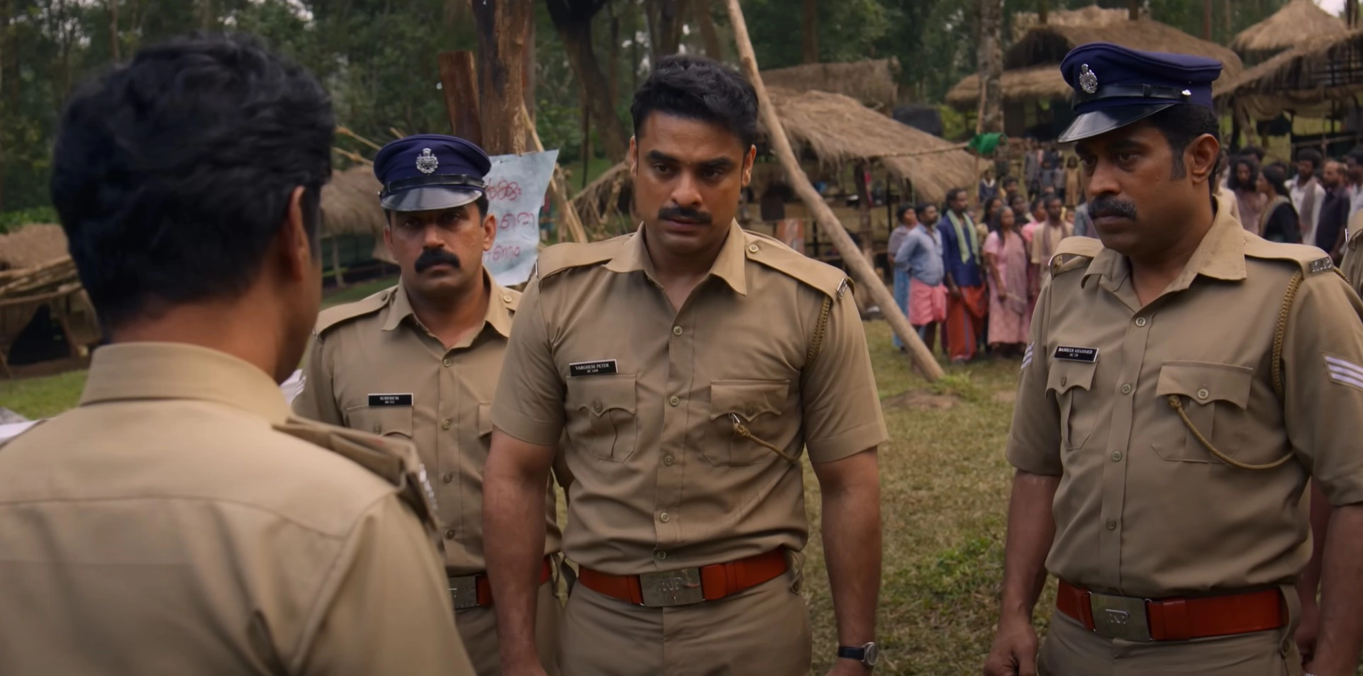 The only figure showing true empathy is Basheer (Suraj Venjaramoodu), a seasoned head constable who mentors Varghese. When a colleague complains about the ongoing protest delaying his return home, Basheer somberly notes that at least he has a home - unlike the protesting tribals. Basheer accepts the system but isn’t complicit in its injustices, though he fails to realise that his and Varghese’s low rank makes them expendable for the bigger cause. Suraj Venjaramoodu plays the role with quiet resolve, that also subtly foreshadows his character’s trajectory.