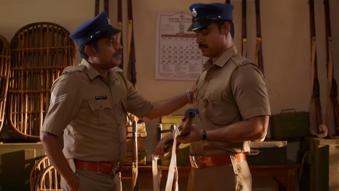 The film, however, avoids leaving the audience with a sense of complete desolation by introducing a parallel narrative set two years later, showing Varghese attempting to make amends while facing opposition from his fellow officers. This subplot feels somewhat disjointed – not because of its non-linear placement within the main story, but due to its uneven execution. After meticulously building tension in the forest sequences, the resolution arrives too abruptly. The narrative also introduces unconvincing elements, such as Varghese suddenly displaying almost Sherlockian deductive skills to solve a murder, without showing how his character developed this ability. These prove to be minor but noticeable flaws in Abin Joseph's otherwise bold screenplay.