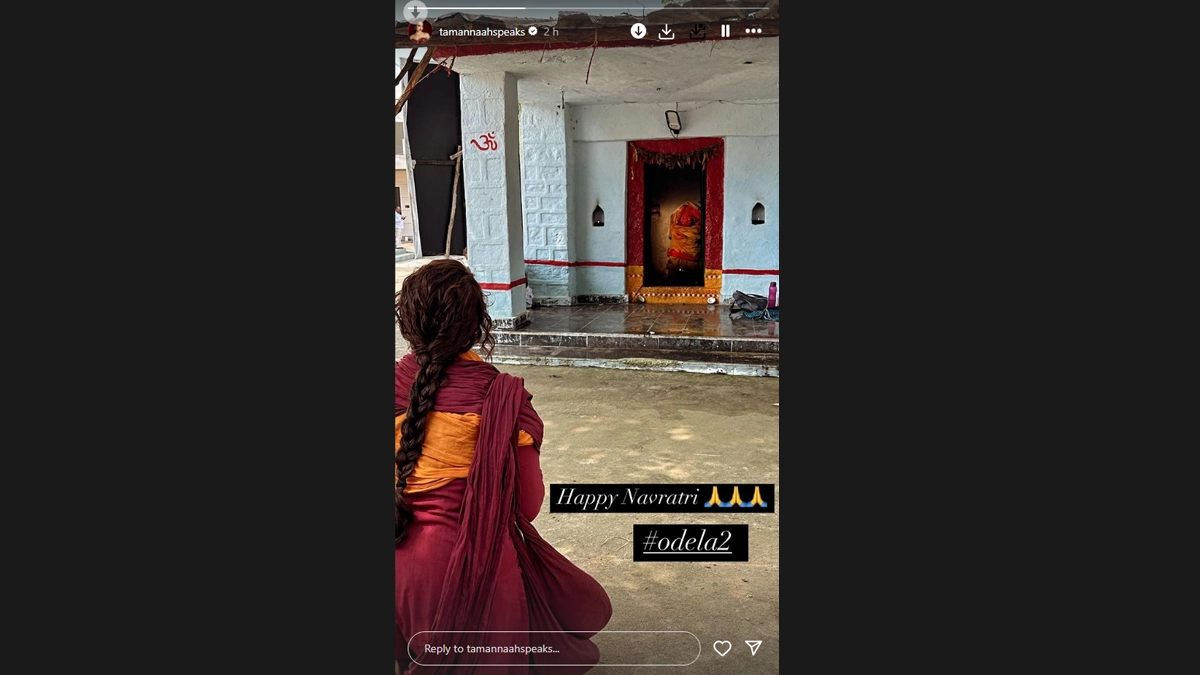 Actress Tamannaah Bhatia wished everyone “happy Navratri” on Thursday and even shared a glimpse from her upcoming film Odela 2. Tamannah took to her Instagram stories, where she shared a picture of herself praying in front of the temple dressed in her Odela 2 costume. She wrote: “Happy Navratri #Odela2.” Odela 2: Tamannaah Bhatia Treats Fans With Her Exciting First Look As Shiva Shakthi on Maha Shivaratri.