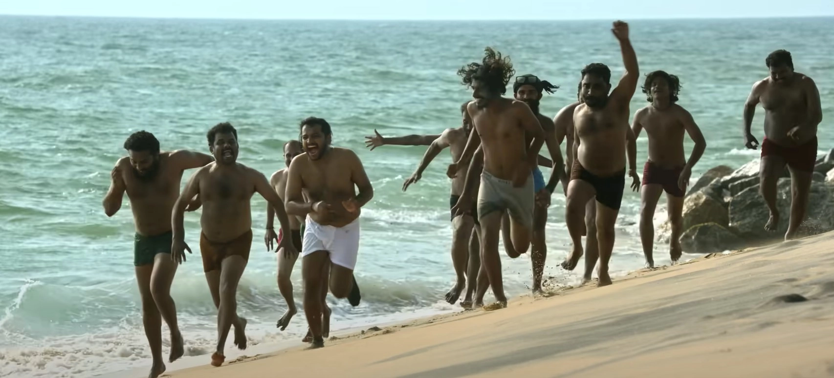 Set in Kollam, the film begins with a beautifully shot sequence accompanied by a song that captures the essence of the place through the lens of cinematographer Sanu John Varughese. That continues ahead in the film, be it while framing the vistas around a shrimp farm or capturing the joy of youngsters prancing around the beach in their underwear.