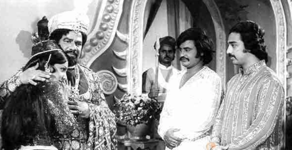 A remake of the Telugu film O Seeta Katha, this film had Kamal Haasan and Rajinikanth as roommates who both fall for the same girl, played by Sridevi. Rajinikanth played a womaniser in one of his earliest negative roles.