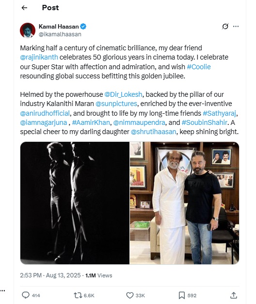 — Lokesh Kanagaraj (@Dir_Lokesh) August 13, 2025