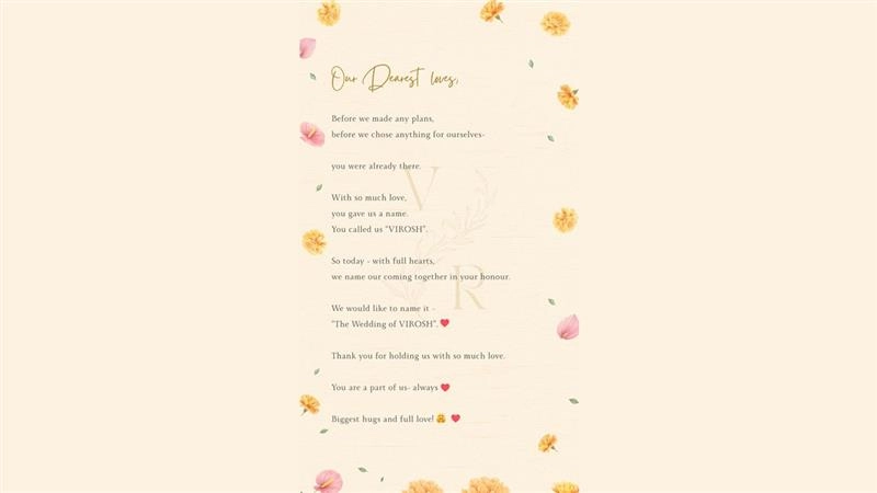 The couple officially confirmed their union on Sunday night in a joint social media post, revealing that the ceremony would be titled "The Wedding of VIROSH." The name is a tribute to their fans, who combined "Vijay" and "Rashmika" into the moniker years before the couple personally acknowledged their romance.
