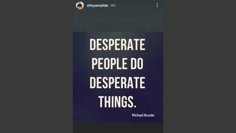 Amid the growing rumours about Samantha and Raj's upcoming wedding, the filmmaker's former wife, Shhyamali De shared a social media post raising eyebrows. Taking to her Instagram stories on Sunday (November 30), and shared a quote which read, "Desperate people do desperate things" from author Michael Brooks.