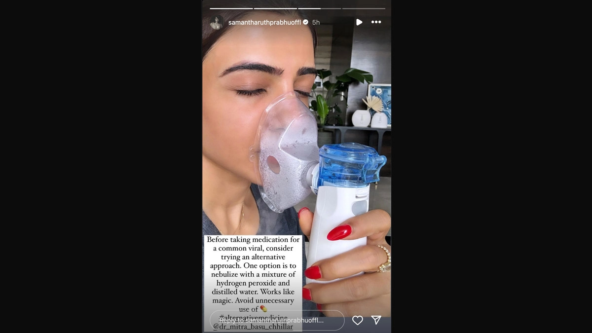 Samantha Ruth Prabhu recently advocated for an alternative method of treating viral infections. She shared a picture on her Instagram story demonstrating the use of a nebuliser, a device that administers medication in mist form directly to the lungs. In her caption, Samantha suggested trying an alternative approach before resorting to medication for common viral illnesses. “Before taking medication for a common viral, consider trying an alternative approach. One option is to nebulise with a mixture of Hydrogen peroxide and distilled water. Works like magic. Avoid unnecessary use of pills,” read the caption of her viral Insta story. Samantha Ruth Prabhu Faces Backlash for ‘Misleading and Misinforming‘ Her Followers About ’Detoxing the Liver’ on Her Podcast Take 20.