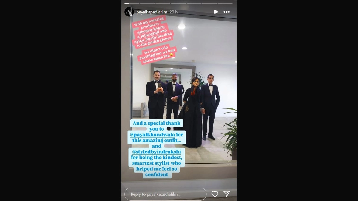 Nevertheless, Kapadia chose to focus on the positive side of the event, highlighting the joy and camaraderie of the experience. In addition to expressing her gratitude for the event, Kapadia also thanked the team behind her Golden Globes look. She shared heartfelt appreciation for the designer Payal Khandwala and stylist Indrakshi Pattanaik. "And a special thank you to @payalkhandwala for this amazing outfit... and @styledbyindrakshi for being the kindest, smartest stylist who helped me feel so confident," she wrote.