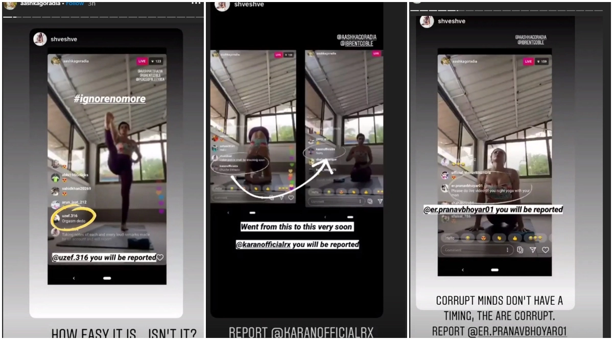 However, trolls, kinda like fleas that are there everywhere, started commenting obnoxious, disgraceful and lewd comments on the live videos. To this, apart from Aashka, her industry colleagues Shveta Salve, Narayani Shastri, Meghana Naidu, among others took strongly to Instagram to shame these trolls. They also started a hashtag #IgnoreNoMore and have been replying to those sending lewd remarks. Aashka Goradia and Hubby Brent Goble Ask Everyone to Resort to Yoga While In COVID-19 Lockdown (Watch Videos).