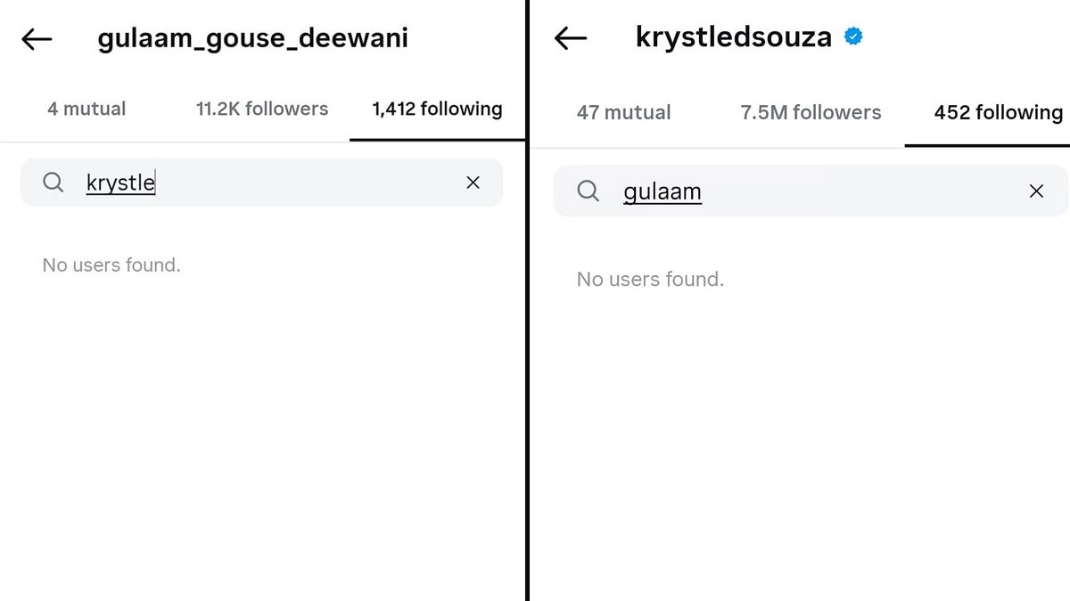 Krystle D’Souza and Gulaam Gouse Deewani Unfollows Each Other – See Post