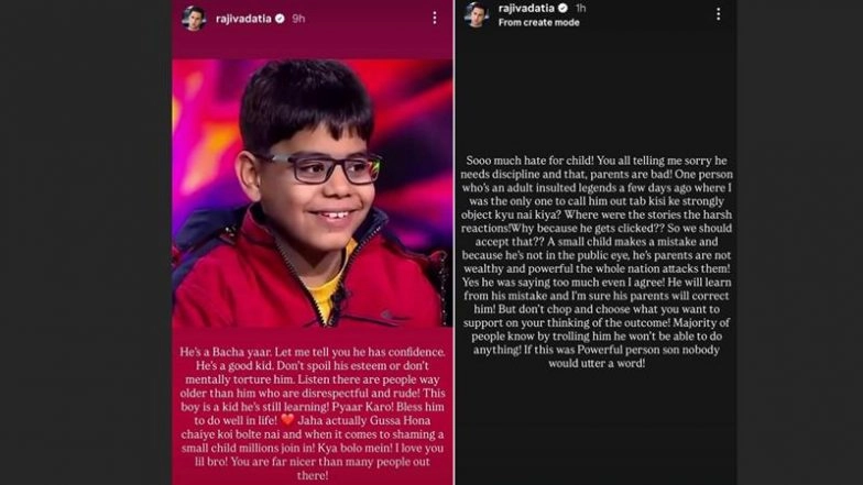Bollywood megastar Amitabh Bachchan has been hosting Kaun Banega Crorepati for over 25 years, welcoming countless guests from all age groups to the hot seat. However, during a recent episode, a young contestant caught everyone’s attention not for his game, but for what viewers felt was his “overconfident” attitude towards the host, Amitabh Bachchan. While social media was flooded with negative comments about the child and his upbringing, a few celebrities stepped forward to support him. Among them was Bigg Boss 15 fame Rajiv Adatia. ‘Horrible Bunch of Bullies’: Chinmayi Sripada Defends 10-YO Overconfident ‘KBC17’ Junior Contestant Ishit Bhatt Who Misbehaved With Amitabh Bachchan on the Quiz Show (View Post).