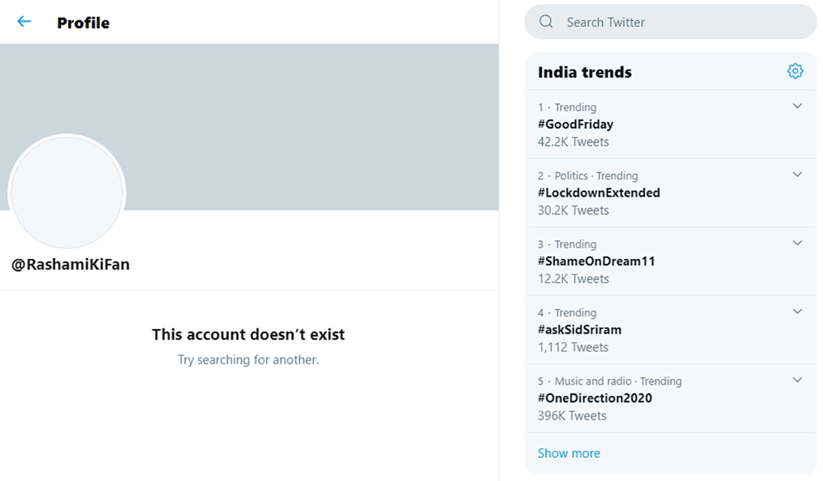 However, When We Clicked on RashmiKiFan's Twitter Handle, This Happened: