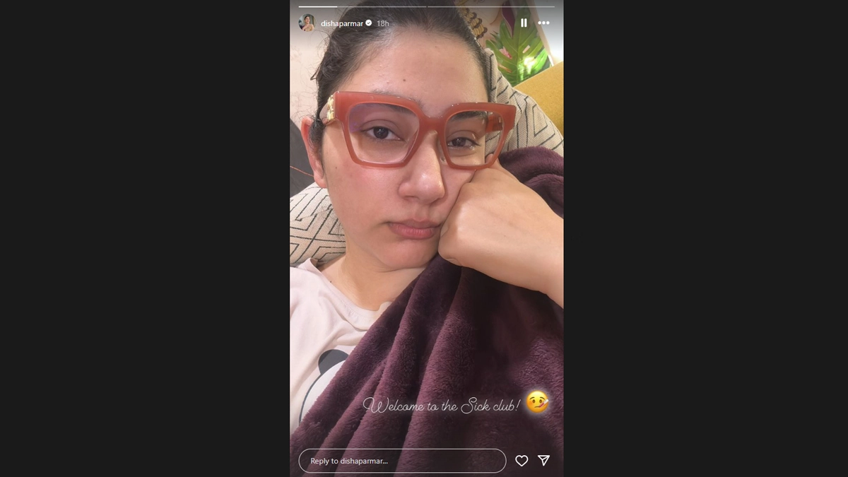 Actress Disha Parmar has revealed that she has entered the 'sick club', after her husband and singer Rahul Vaidya has got infected with Dengue. Taking to Instagram Stories, Disha, who has 3.2 million followers shared her picture, in which she is looking extremely sick. She is wearing a tee-shirt and has covered herself with a blanket. Her hair is tied in a bun and is wearing glasses. Ganesh Chaturthi 2024: Rahul Vaidya and Disha Parmar Share Heartwarming Video Making ‘Modak’ for Lord Ganesha.