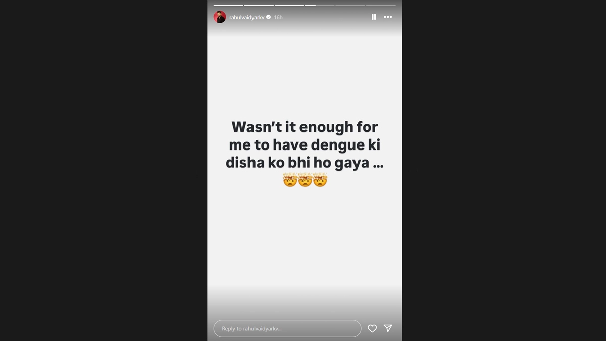 Rahul took to Instagram Stories, and posted a note, "Wasn't it enough for me to have dengue ki Disha ko bhi ho gaya..."