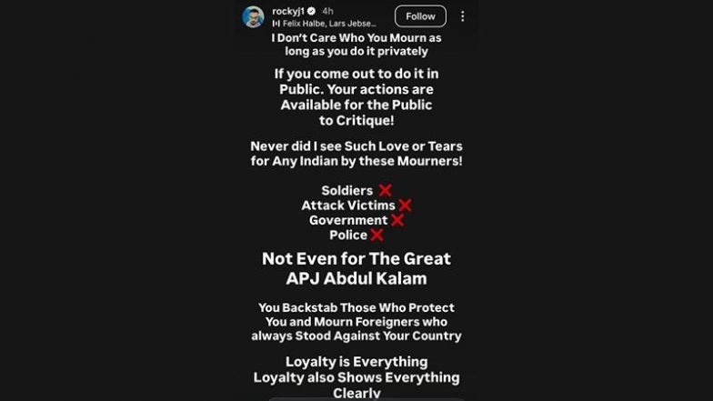 Following Bhatt’s comments, Rocky Jaiswal took to his Instagram stories to share his perspective. Known for being vocal on social issues, Jaiswal appeared to distance himself and the broader industry from the sentiment, emphasising the importance of national identity and historical context.