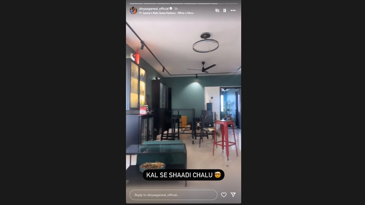 Reality TV star Divya Agarwal, who is all set to tie the knot with her boyfriend, restaurateur and influencer Apurva Padgaonkar, gave a sneak peek into her home, saying, "kal se shaadi chalu". Taking to Instagram Stories, where she has 2.9 million followers, Divya shared a video of her home, accompanied by the tune of 'What a mess'. The MTV Ace of Space 1 winner will tie the knot with Apurva on February 20. Apurva owns multiple restaurants in Mumbai. It's Official! Divya Agarwal to Tie the Knot With Fiancé Apurva Padgaonkar on February 20 (Watch Video).