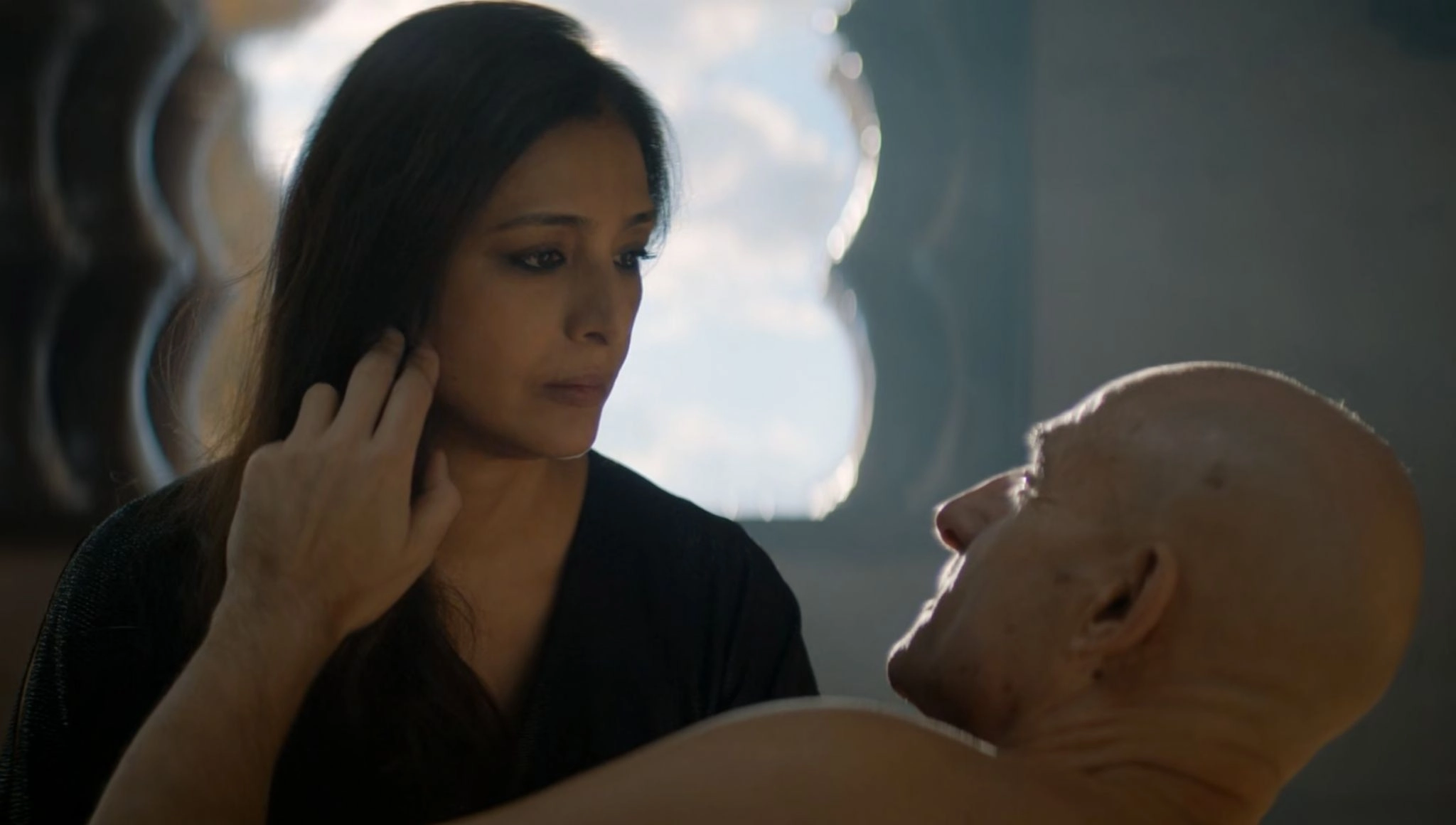 Tabu’s entry in episode 5 revealed that Sister Francesca had an affair with Emperor Javicco Corrino (Mark Strong), resulting in the birth of their son, Constantine (Josh Heuston). Francesca claims to have come to the palace because Constantine was unhappy. Encouraging her son to earn his father’s favour, she inadvertently sets events in motion that lead Constantine to betray Keiran Atreides (Chris Mason). Meanwhile, her unresolved feelings for Javicco resurface as the two share a kiss and eventually engage in a sexual encounter by the episode's end.