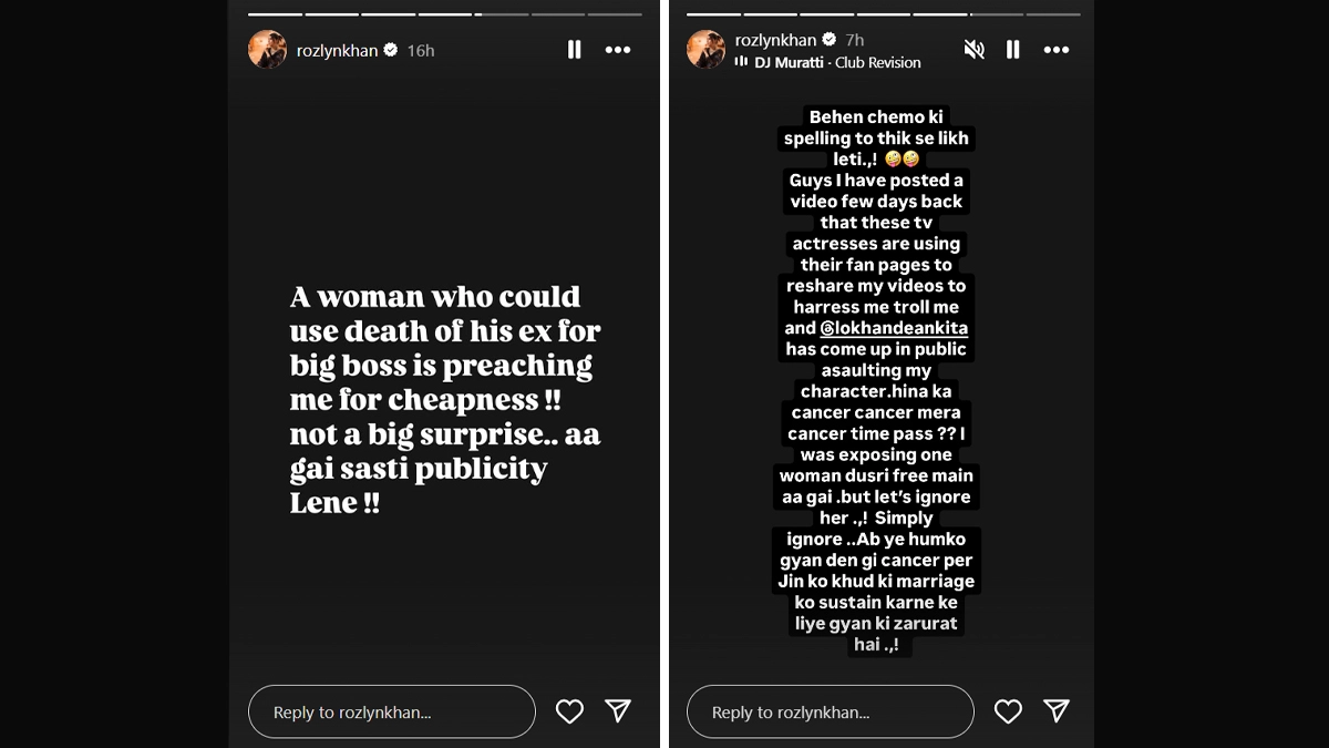 Rozlyn's post comes in response to Ankita's recent remarks, where she called her allegations "cheap" and urged Hina to stay strong.