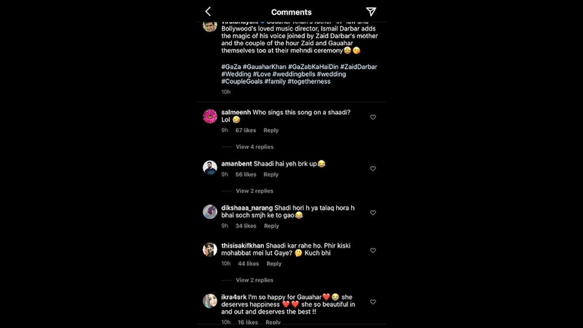 A user wrote, “Who sings this song on a shaadi? Lol." Another user wrote, “Shaadi kar rahe ho. Phir kiski mohabbat mei lut Gaye? Kuch bhi (Why are they mourning a doomed romance at a wedding function?).” One user even went on to say, “Shadi mai aisa gana pagal khain k (Such a song at a wedding? They are mad)." Gauahar Khan To Marry Zaid Darbar On December 25, The Bigg Boss 7 Winner Confirms.