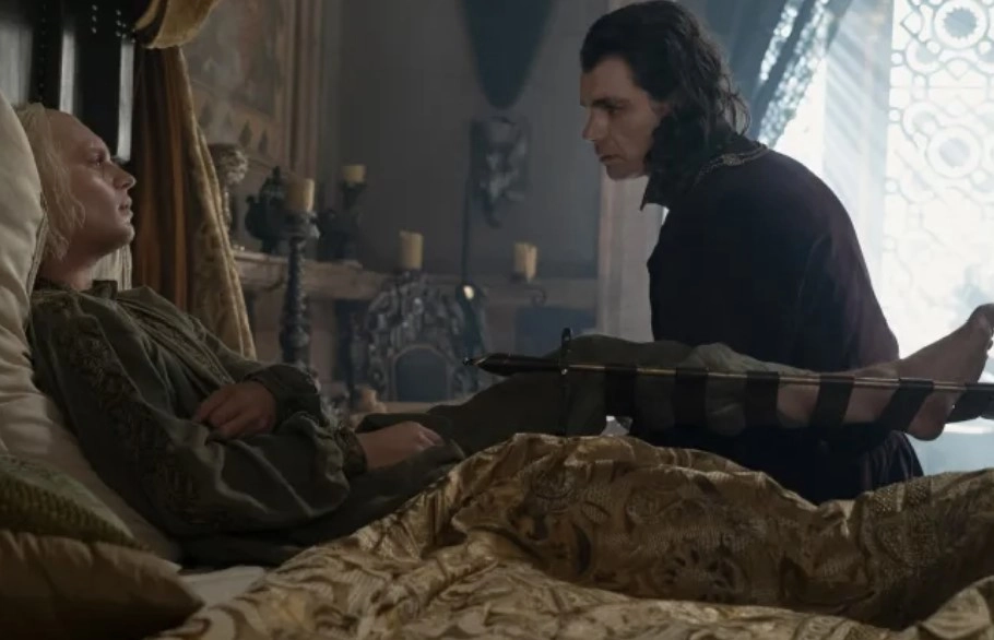 The season finale episode gets its name from Ser Corlys renaming his ship as a tribute to his dead wife. When Rhaenyra visits him, he is preparing his fleet and advises her to strike first. He also hints at another player who might join her forces along with her dragonriders and fleet. Is he referring to Rhaena? Or is he talking about Daemon? Later, Corlys has a conversation with Alyn, where he wants to offer help. In the heated conversation that unfolds, it is confirmed that Alyn and his brother are indeed the bastard children of Corlys himself, as Alyn reminds his father of the shame, humiliation, and hunger he endured while his father and legitimate son walked past him in the market, happy and well-fed.