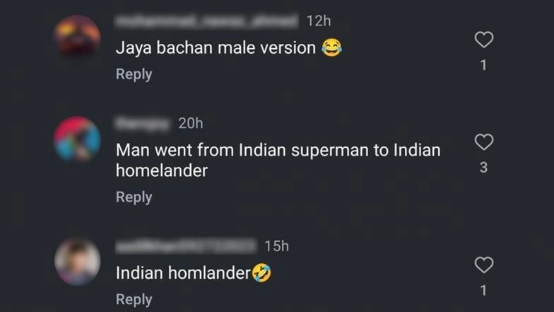 The clip has gone viral online, and netizens have shared nasty reactions to it. The majority of the users called him "Jaya Bachchan, male version", while the others compared Mukesh Khanna, aka Shaktimaan's behaviour, with the unpredictable superhero, Homelander, from Prime Video's The Boys. The users wrote, "Indian Homelander".