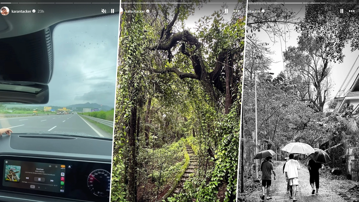 Actor Karan Tacker is on a vacation to hill station Khandala in Maharashtra, with his friend and artist Gaurav S. Bajaj, and has shared the mesmerising view of nature in monsoon season. Karan took to Instagram Stories, where he has 1.6 million followers, and dropped a video of himself driving on the highway. He is listening to the song "Dooriyan" by Mohit Chauhan from the movie Love Aaj Kal. The snippet is captioned as: "Baarish ka mausam, Highway drive, aur Hindi gaane!" Karan Tacker Falls Sick Due to Mumbai Monsoon; Actor Shares Pic of Prescribed Medications on Insta.