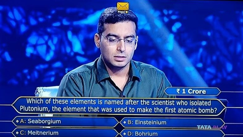 The INR 1 crore question of KBC 17 was "Which of the these elements is named after the scientist who isolated Plutonium, the element that was used to make the first atomic bomb?"