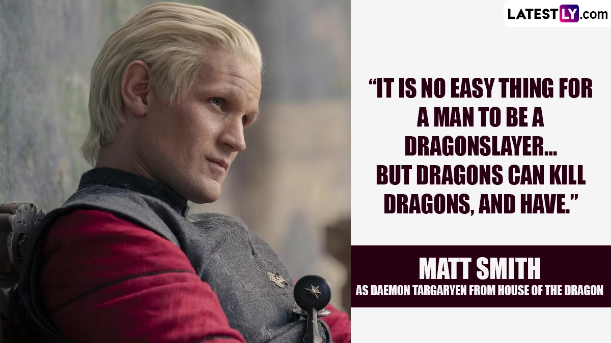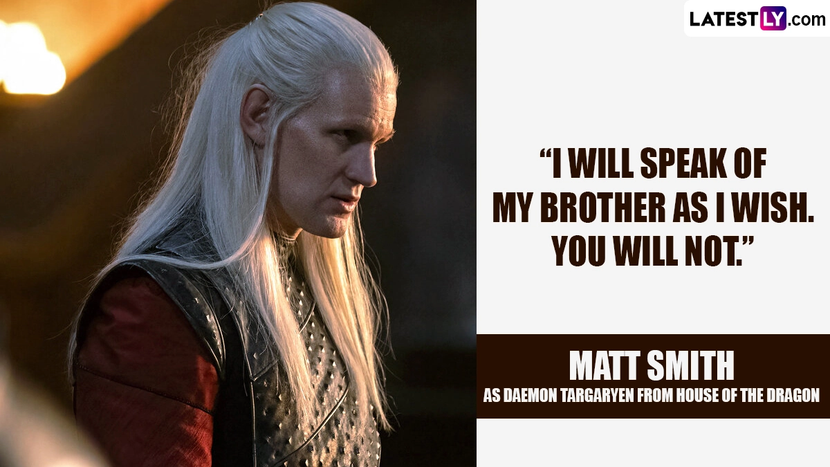 Playing a Targaryen, Matt Smith just honestly fit into the role of Daemon Targaryen like a glove. With a ton of charm and just the right amount of arrogance to create a prince that people won't be sure how to feel about, he was definitely a highlight of season one. So, with Matt Smith turning 40, let's take a look at eight of his best quotes as Daemon Targaryen to celebrate his birthday. House of the Dragon Season 1 Finale Review: Emma D’Arcy’s ‘Game of Thrones’ Prequel Ends on a Satisfyingly Tense Note! (LatestLY Exclusive).