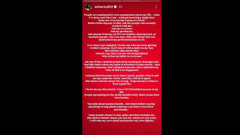 She further wrote, "Ever since I got engaged, I'm the one who has been getting trolled nonstop. And I took it with a smile on my face. But nobody talks about that. Nobody says that I'm the one being bullied. Why is that invisible to everyone?"