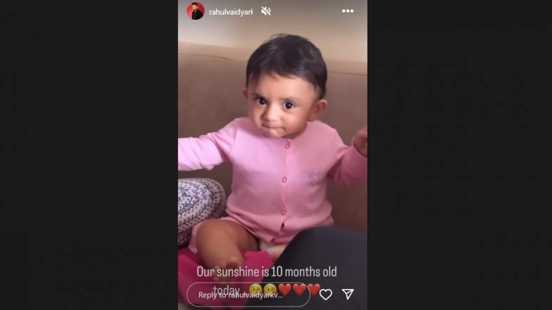 Singer Rahul Vaidya and his actress wife Disha Parmar celebrated 10 months of their 'sunshine' -- their daughter Navya -- on Saturday. Rahul took to Instagram stories and shared an adorable video featuring their little bundle of joy, Navya, dressed in a baby pink outfit and enjoying her meal. She is seen eating papaya while her mother, Disha, sits beside her, having her own lunch. ‘Laughter Chefs Unlimited Entertainment’: Dharmendra Sings His Classic Hit ‘Yeh Dil Tum Bin Kahin Lagta Nahin’ With Rahul Vaidya (Watch Video).