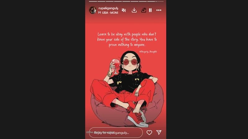Taking to her Instagram stories, the actress reshared the.girly_thoughts post that read, “Learn to be okay with people who don’t know your side of the story. You have to prove nothing to anyone.” The Anupamaa actress also added Blackpink’s Lisa's popular track “Money.”