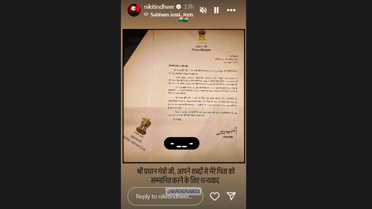 Sharing a picture of the letter from the Prime Minister's Office, Nikitin wrote,“श्री प्रधान मंत्री जी, आपने शब्दों से मेरे पिता को सम्मानित करने के लिए धन्यवाद @narendramodi (Respected Prime Minister, thank you for honouring my father with your words. @narendramodi)."