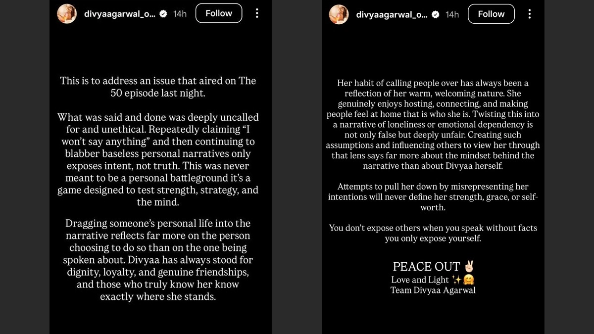 In response to the viral clips, Divya Agarwal’s team posted a strongly worded clarification on her official Instagram story. The team criticised the use of personal narratives as a tactic within the game show, asserting that such claims lack a factual basis.