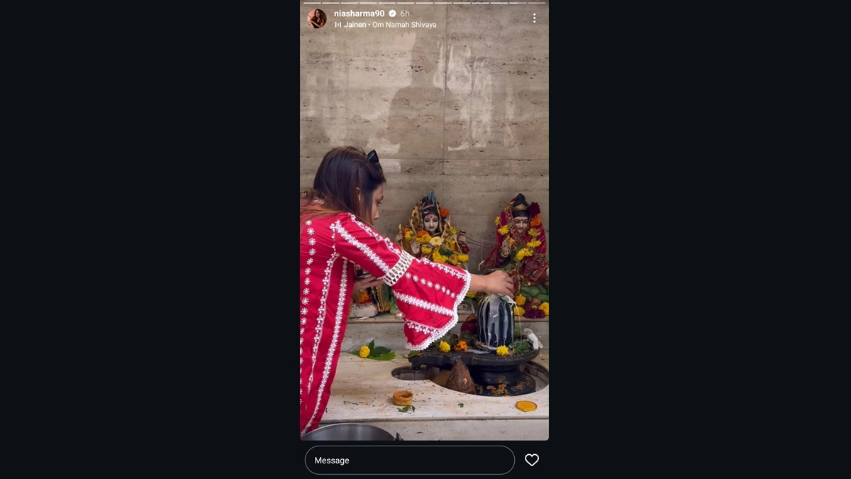 Actresses Shivangi Joshi and Nia Sharma visited the Shiva temple on Monday to mark the third 'Shravan Somvaar', a significant day dedicated to Lord Shiva. Nia took to her Instagram stories and shared a video of herself performing 'Dudh Abhishek' on the Shivling, set to the soothing background score of 'Om Namah Shivaya.' Nia appeared in a simple red dress, without makeup and with her hair open, embodying a serene and devotional look. ‘Suhagan Chudail’ Actress Nia Sharma in Love? Here’s What Her Expressions From a BTS Clip Hint At!.
