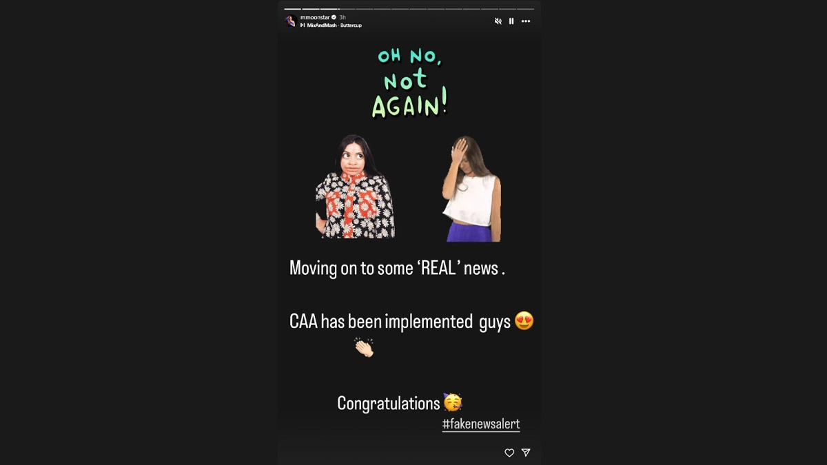 Munmun also took to the stories section and said, “Oh no not again… moving on to some ‘real’ news… CAA has been implemented guys. Congratulations. #fakenewsalert." She shared another post holding a cup of tea, with the captioned: “‘FAKE' news toh chalti rehegi… But nothing beats evening tea with my girl gang." After Munmun Dutta, Raj Anadkat Reacts to His Engagement News With the TMKOC Actress, Calls It ‘False and Baseless’.