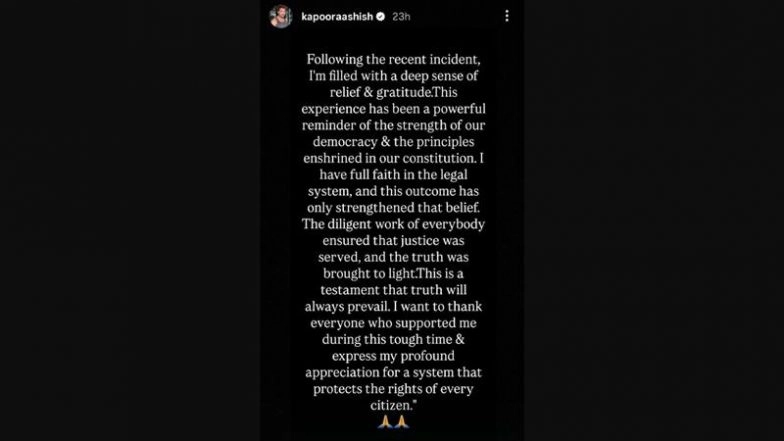 Ashish reiterated his faith in the country's judicial system and added, "I have full faith in the legal system, and this outcome has only strengthened that belief. The diligent work of everybody ensured that justice was served, and the truth was brought to light. This is a testament that truth will always prevail." Showing his gratitude for everyone who stood by him during this tough time, Ashish went on to say, "I want to thank everyone who supported me during this tough time & express my profound appreciation for a system that protects the rights of every citizen."