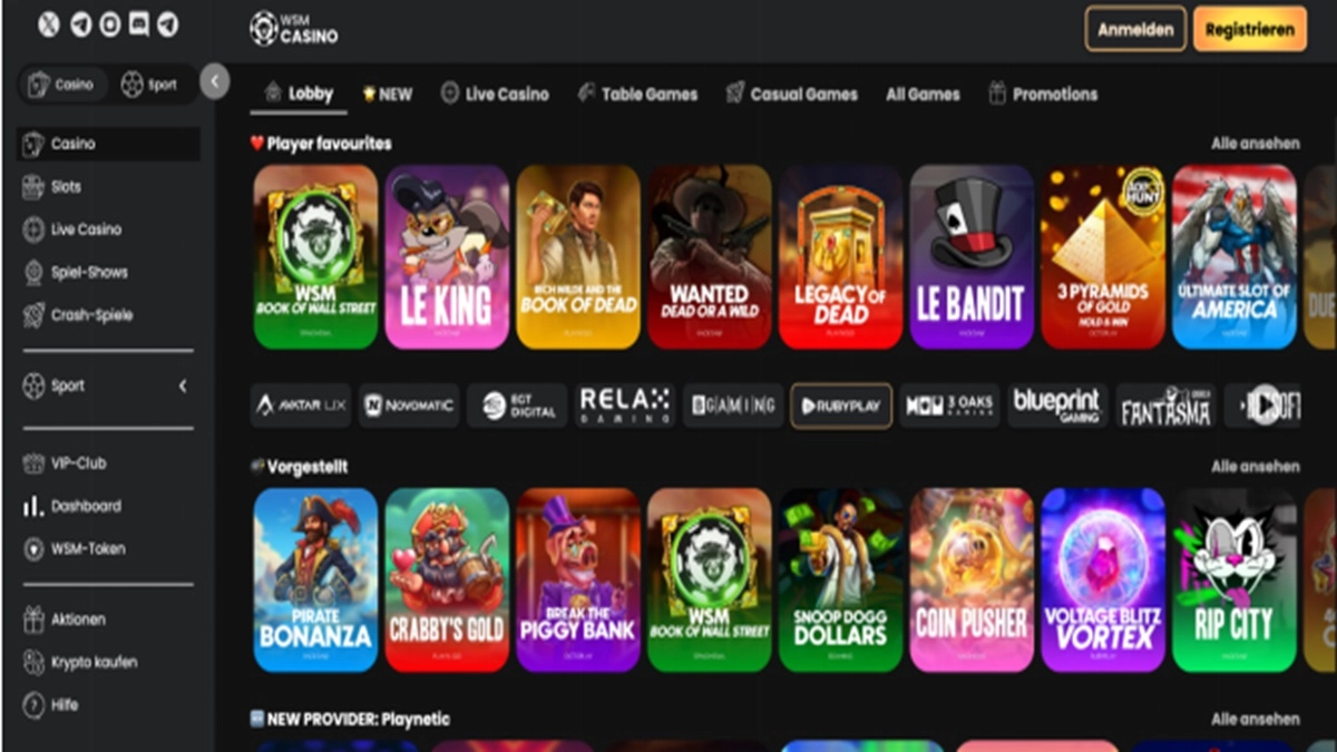 Das prall gefüllte Spiele-Portfolio mit über 5000 Titeln kann sich sehen lassen. Bekannte Hersteller sind Play’n GO, Pragmatic Play und Novomatic. Vor allem Novomatic ist für viele Spieler ein triftiger Grund, das WSM Casino zu besuchen, denn Sie können Book of Ra Deluxe und viele weitere Novoline-Slots spielen.