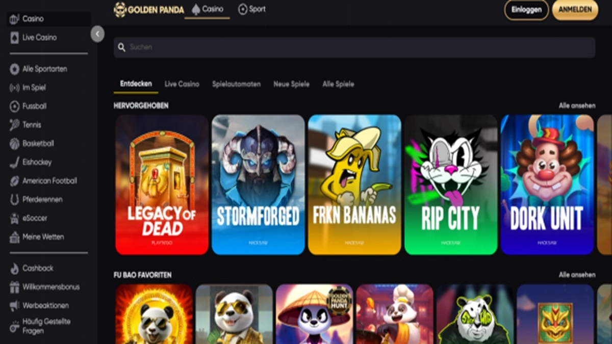 - Golden Panda– 200% bis 5.000 € + 50 Freispiele