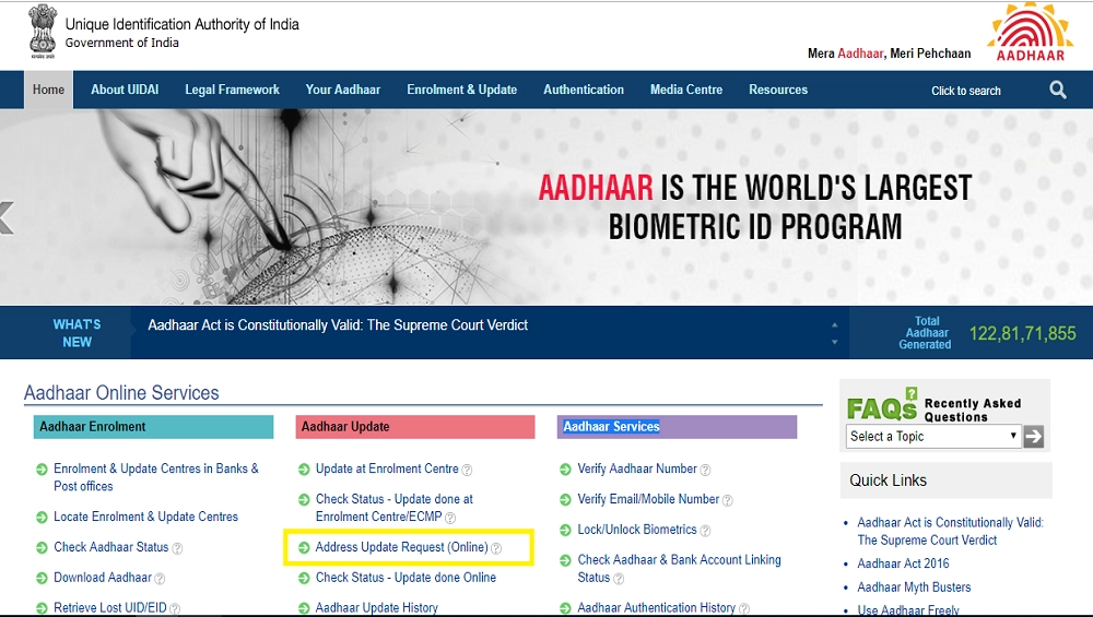 How to update your address in Aadhaar online (Photo Credits: UIDAI website)